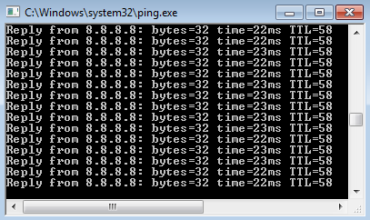- Memastikan jaringan komputer mendapatkan akses internet. Untuk Win 7 keatas silakan sorot icon jaringan baik LAN mau pun WiFi di pojok kanan bawah dengan mouse. Jika muncul tulisan "Internet Access" maka bisa dipastikan ada koneksi internet. Atau cek sambungan ke DNS Google dengan cara tekan tombol "Windows + R" bersamaan > ketik "ping 8.8.8.8 -t" > "OK". Jika muncul "Reply from 8.8.8.8 bytes=... time=... TTL=..." berarti mendapatkan koneksi internet.